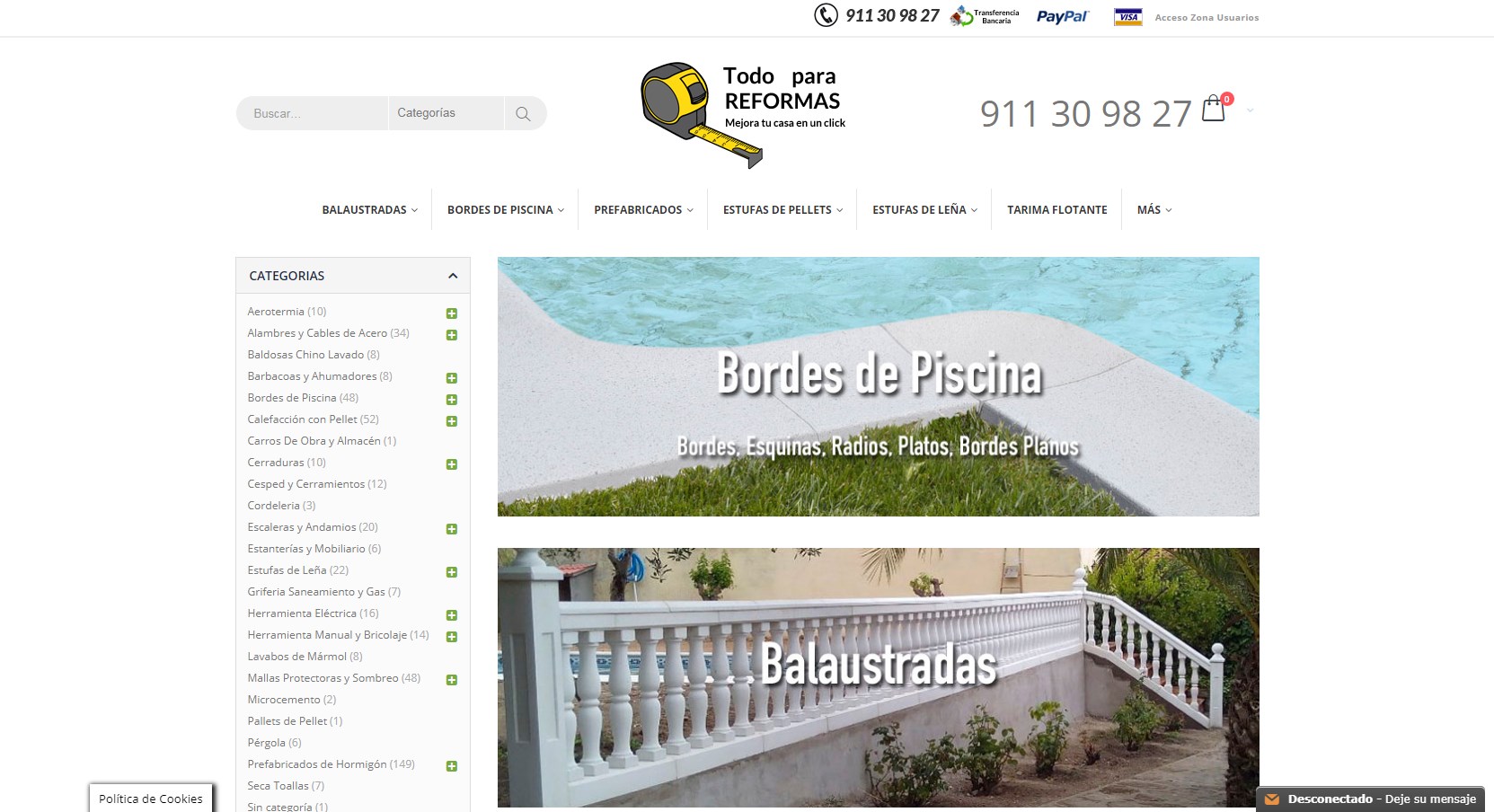 Todo para reformas es tu tienda de balaustres y estufas pellets de confianza, garantizándote los mejores precios y la mejor calidad en productos para reformar tu hogar. Disponemos de balaustradas y todo tipo de prefabricados de hormigón, para decorar el exterior de tu vivienda con estilo y elegancia, césped artificial, cubremuros, remates o a una original balaustrada, bordes de piscinas.